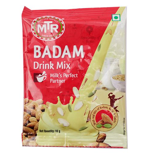 Add 15 g (3 tsp) of MTR Badam Drink Mix to 150 ml (1 cup) of hot/cold milk. Stir well and serve