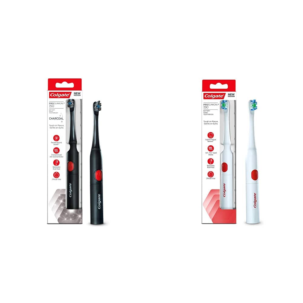 Colgate Proclinical is an innovative electric toothbrush that combines unique, multi-directional brush strokes (over 2000 strokes per minute) with soft, thin-tipped bristles for a superior cleaning experience. Colgate Proclinical 150 Charcoal Battery Power-Sonic Toothbrush offers 5X plaque reduction compared to a manual toothbrush and is gentle on the gums. Its charcoal-infused anti-bacterial bristles help prevent bacterial growth on the bristle surface. This toothbrush has a replaceable head that can be easily changed every 3 months as recommended by dentists and hygienists. The electrical toothbrush also has a built-in 2-minute timer that turns it off after reaching the maximum recommended brushing time. Also, to offer you a seamless experience, the brush has been designed to be slim, lightweight, and quiet. Try Colgate Proclinical 150 Charcoal Battery Power-Sonic Toothbrush and give yourself another reason to smile.